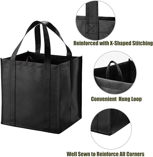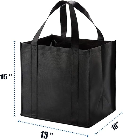 Diese wiederverwendbare Tragetasche besteht aus hochwertigem recyceltem Polypropylen und ist sowohl umweltfreundlich als auch außergewöhnlich langlebig. Die verstärkten Griffe sind bis zum Boden der Tasche angenäht, wodurch das Gewicht gleichmäßig verteilt wird und ein Reißen bei starker Belastung verhindert wird. Eine dicke, starre, abnehmbare Bodenplatte aus Kunststoff sorgt für zusätzliche Stabilität und ermöglicht, dass die Tasche selbstständig aufrecht steht, was das Ein- und Auspacken erleichtert. Die Tasche ist 15 Zoll hoch, 13 Zoll lang und 10 Zoll breit, mit einem Fassungsvermögen von 40 Litern und einer Belastungsgrenze von 40 Pfund. Diese Größe ist so konzipiert, dass sie bequem über der Schulter getragen werden kann.