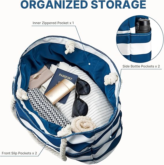 Packen Sie Handtücher, Sonnencreme, Badebekleidung und eine Wasserflasche ein. Der sanddichte Stoff lässt sich leicht abschütteln und der Kordelzug bietet zusätzlichen Platz für nasse Kleidung oder Souvenirs.