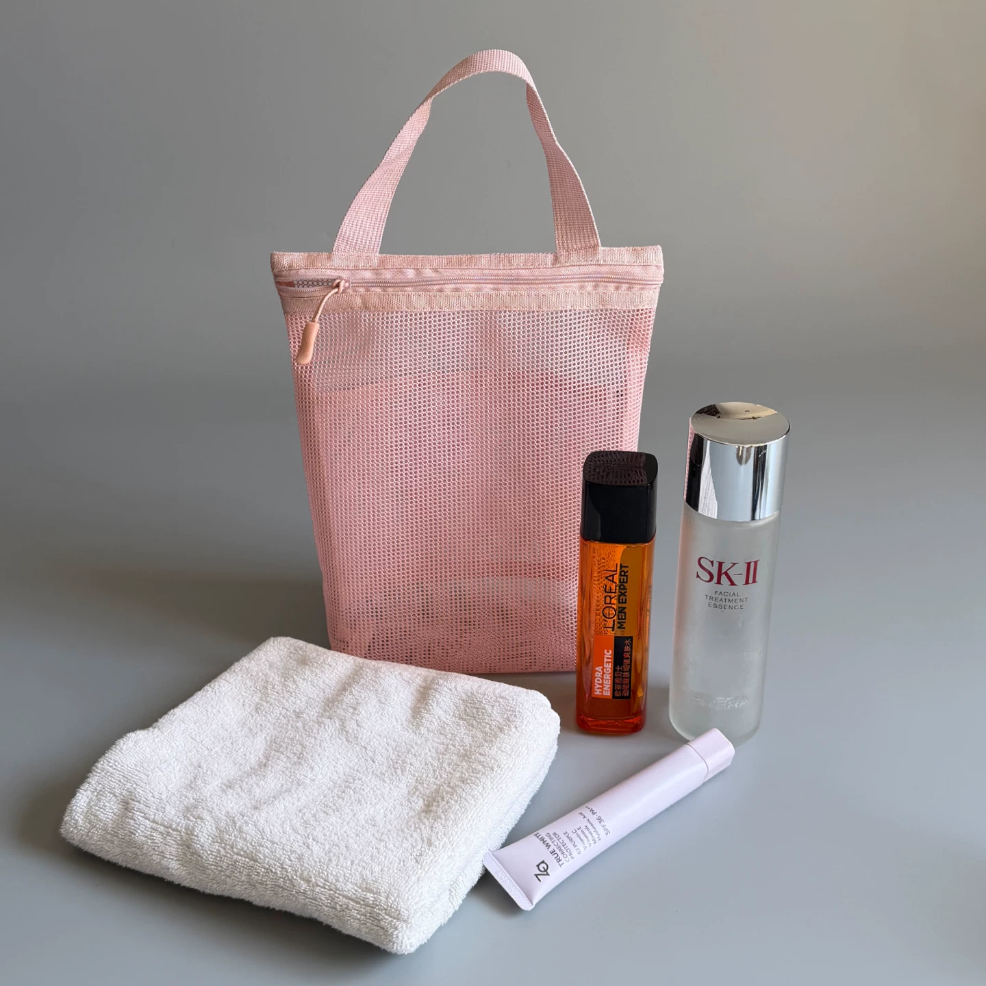 Packen Sie Toilettenartikel, Hautpflegeflaschen und eine Zahnbürste ein. Das schnell trocknende Netz hält feuchten Gegenständen stand und die kompakte Falte passt problemlos ins Handgepäck oder aufgegebenes Gepäck.