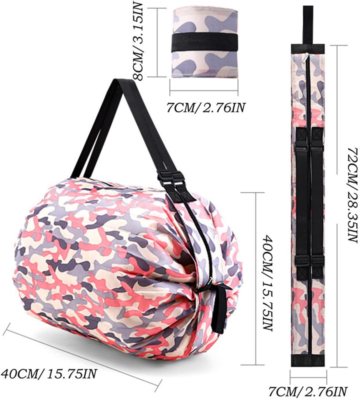 La bolsa resuelve el problema del almacenamiento difícil con un simple mecanismo de plegado: se pliega en una pequeña bolsa que mide 3,3 por 3,3 pulgadas, ahorrando espacio en bolsas, bolsillos o cajones. Cuando está desplegado, mide 15,7 por 15,7 pulgadas y tiene una capacidad generosa que satisface todas las necesidades de almacenamiento en un solo viaje. El asa ancha garantiza un transporte cómodo de cargas pesadas de hasta 33 libras. Un cierre de cremallera mantiene el contenido seguro. Disponible en seis patrones de moda: rayas de cebra, leopardo, azul marino, rosa camuflaje, leopardo negro y camuflaje marrón. Perfecto para ir de compras, viajar, acampar al aire libre, hacer deportes y hacer recados diarios. Totalmente personalizable a través de servicios OEM y ODM con colores personalizados o impresión de logotipos disponibles para pedidos al por mayor.