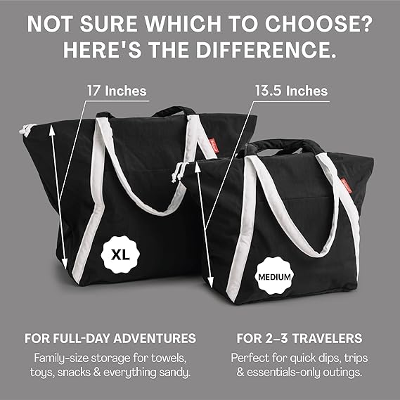Confeccionado 100 % con nailon antidesgarro posconsumo, este bolso de playa sostenible es duradero, resistente al agua y a la arena, y mantiene los elementos esenciales secos y limpios. En el interior de gran tamaño (13,5 x 21 x 8 pulgadas) caben toallas, protector solar, refrigerios, botellas de agua, pañales y una muda de ropa para 2 o 3 viajeros. Un cierre superior con cremallera asegura el contenido, mientras que un bolsillo frontal de acceso rápido guarda objetos pequeños. Las asas cortas y largas acolchadas proporcionan un transporte cómodo en el hombro o en la mano. Una bolsa interior extraíble se coloca en el interior para guardar objetos de valor o puede guardar la bolsa cuando está plegada. La bolsa se pliega de forma compacta para viajar. Perfecto para vacaciones de verano, bolsos de gimnasio, viajes en crucero y uso diario durante todo el año.