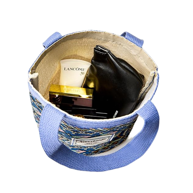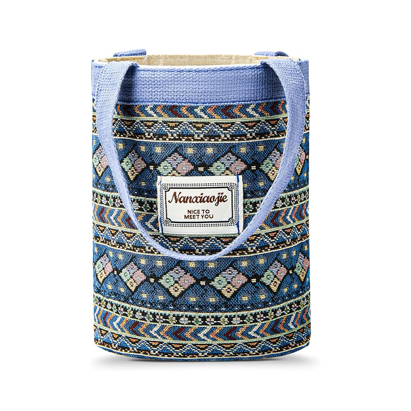 인스타그램에 넘쳐나는 한식/일본식 보호 미니 토트백! 풍부한 블루, 그린, 따뜻한 톤의 복잡한 민족 자수가 있는 두꺼운 천연 황마 캔버스입니다. 더블 스티치 패딩 핸들이 어깨에 고급스러운 느낌을 줍니다. 쉽게 접근할 수 있도록 넓게 열리면서도 완벽한 형태를 유지합니다. 13인치 MacBook 슬리브 또는 전체 도시락 세트에 적합합니다. 59g에 불과한 초경량, 납작하게 접을 수 있고 비싸 보이지만 비용은 1센트입니다. 최고의 아시아 미용 브랜드가 사용하는 동일한 공장 - 이제 귀하의 로고로 이용 가능합니다.